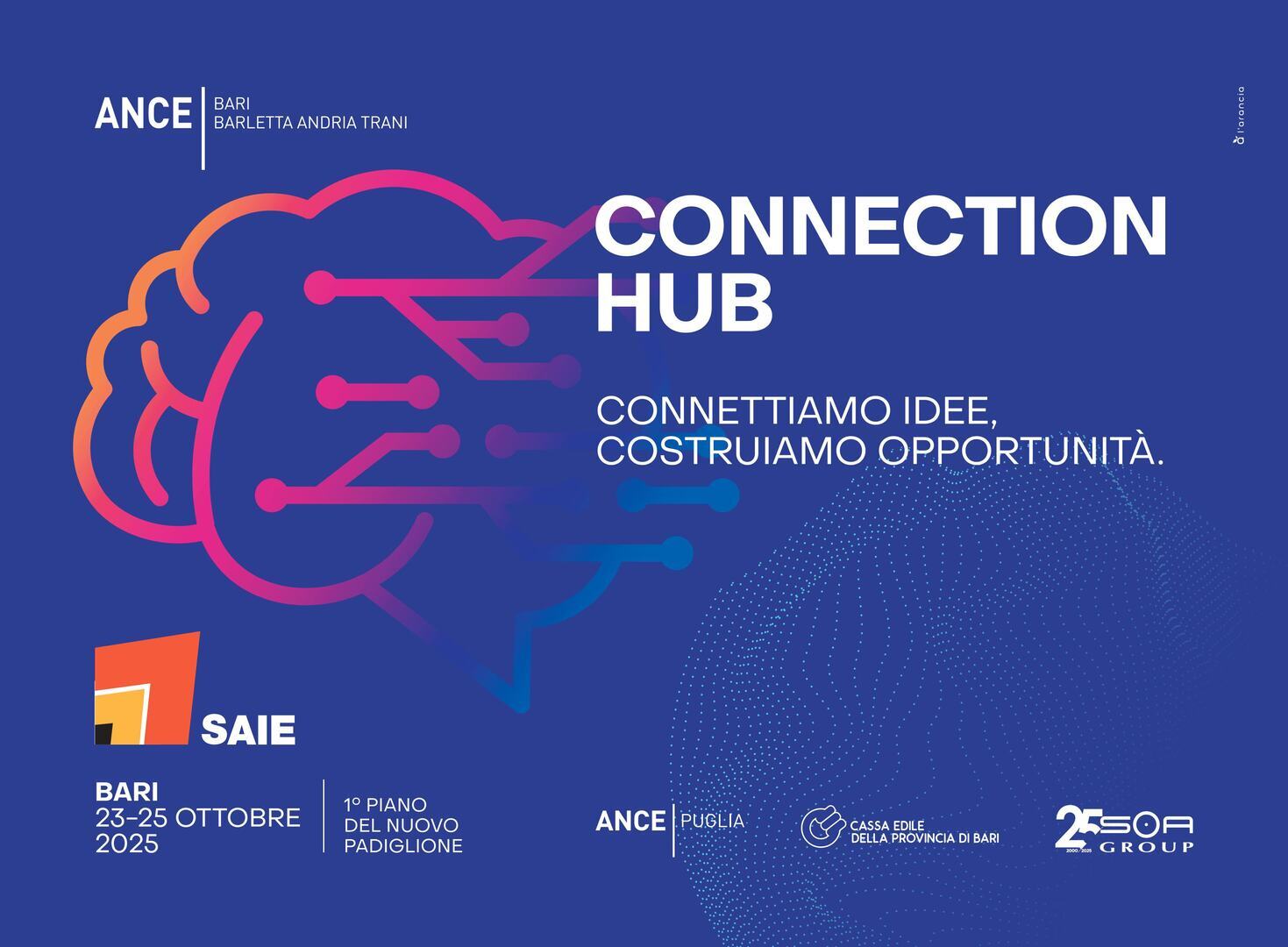 Dal 23 al 25 ottobre torna il SAIE di Bari e il Connection Hu di ANCE Bari e BAT, lo spazio esclusivo dedicato agli associati all’interno della Fiera del Levante. Un luogo dove intrecciare nuove relazioni, confrontarsi su idee, progetti e partecipare ad appuntamenti riservati.